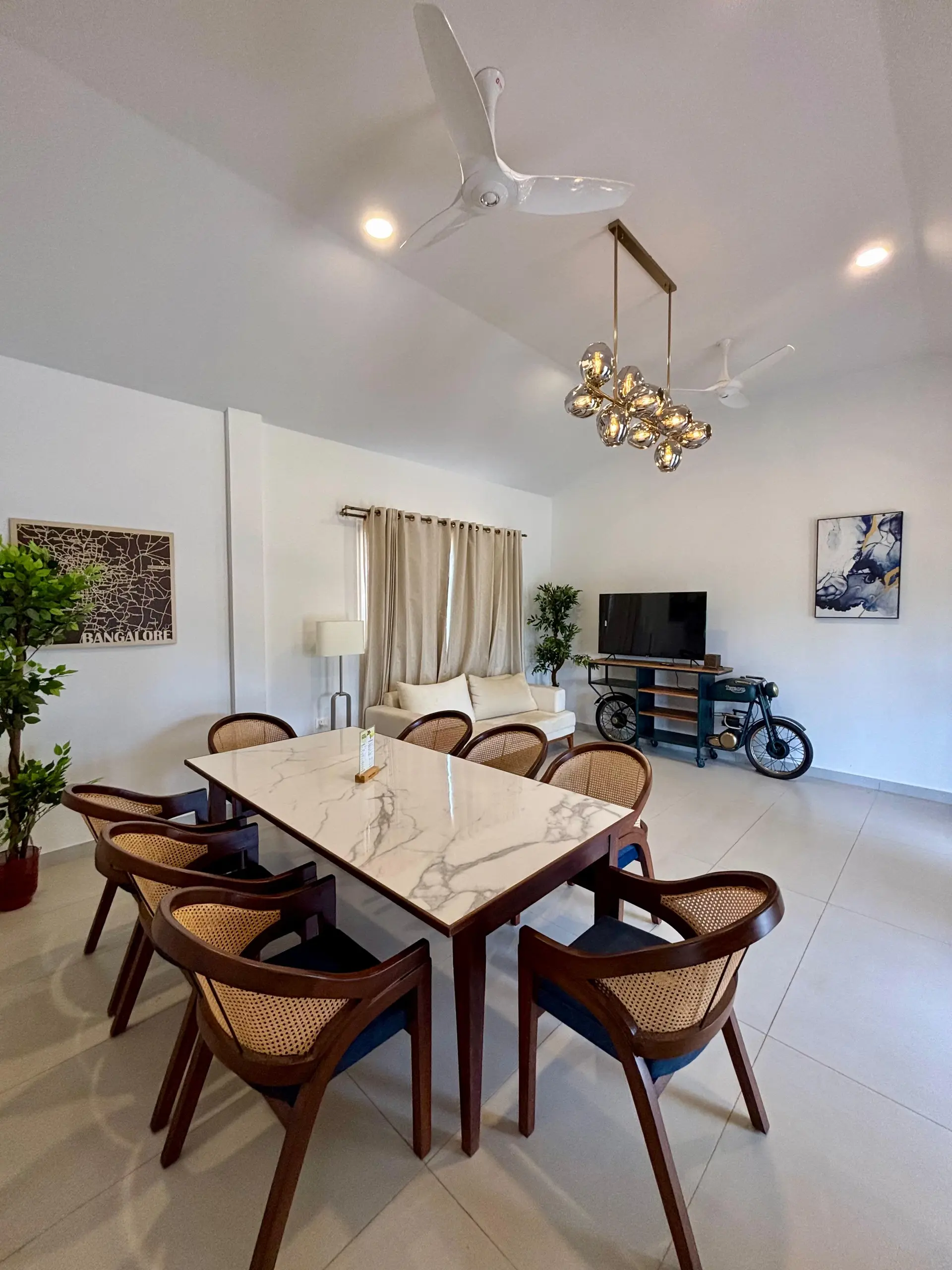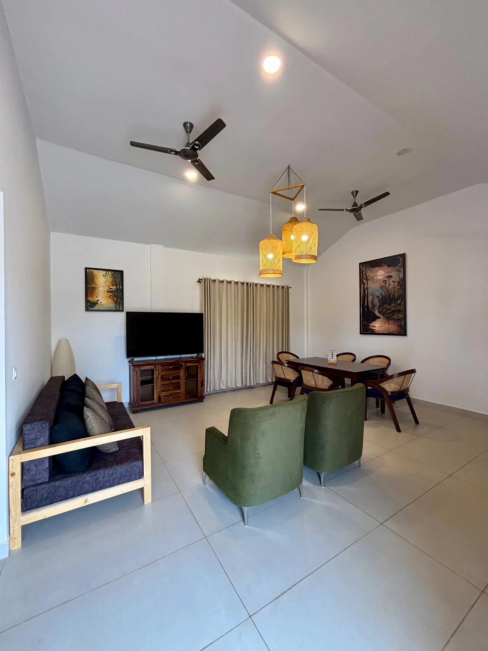 Beyond the private rooms, the villa features inviting common areas that encourage socializing, whether you’re sharing meals, unwinding together, or simply enjoying each other’s company. Its serene setting within Serenity Retreat enhances the sense of peace, while its convenient location allows for easy access to local attractions and dining options. Perfect for a self-catered vacation, the Amaara 3BHK Villa combines simplicity, space, and tranquility to create a stay that feels both refreshing and convenient.